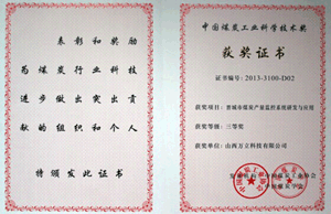 中國煤炭工業(yè)科學(xué)技術(shù)獎“煤炭產(chǎn)量監控系統項目”...