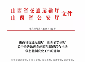 【治超看山西】山西省推進(jìn)治理車(chē)輛超限超載聯(lián)合執法常態(tài)化制度化工作的通知