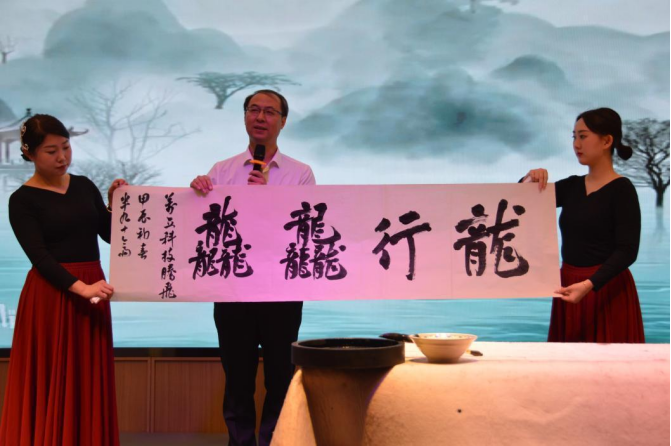 贠總在現場(chǎng)揮毫潑墨,寫(xiě)下了“龍行龘龘”四個(gè)大字,寓意著(zhù)萬(wàn)立園區在新的一年里能夠聚力騰飛,取得更加輝煌的成就。藺總監則為大家帶來(lái)了九節鞭表演,他的技藝爐火純青,再一次點(diǎn)燃了現場(chǎng)的氣氛。
