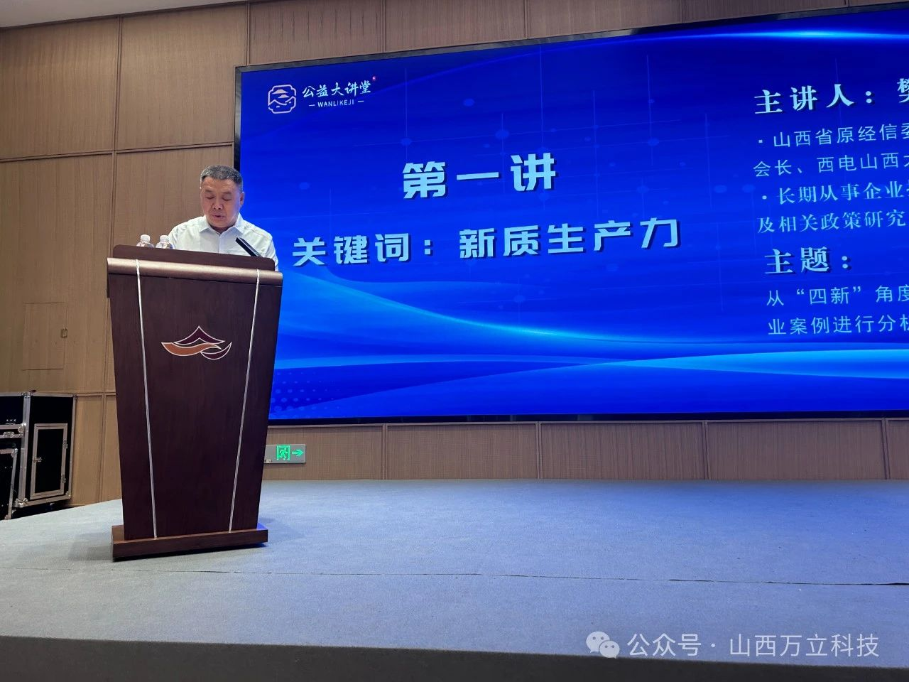 2024年6月19日,山西萬(wàn)立科技軟件和信息服務(wù)集聚區園區服務(wù)中心在山西飯店·柒號食府三樓多功能廳開(kāi)展了主題為《從“四新”角度深入剖析“新質(zhì)生產(chǎn)力”的核心要義》的首期公益大講堂活動(dòng),本次講座特邀原山西省原經(jīng)信委副巡視員、山西省環(huán)境保護產(chǎn)業(yè)協(xié)會(huì )會(huì )長(cháng)、西電山西大數據研究院特聘專(zhuān)家樊文彬先生作為主講嘉賓,為園區企業(yè)帶來(lái)了一場(chǎng)關(guān)于新質(zhì)生產(chǎn)力的精彩授課。