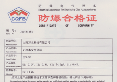 礦用分站防爆合格證