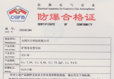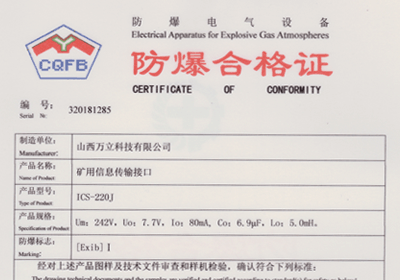 礦用信息傳輸接口防爆合格證