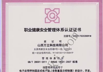 職業(yè)健康安全管理體系認證證書(shū)
